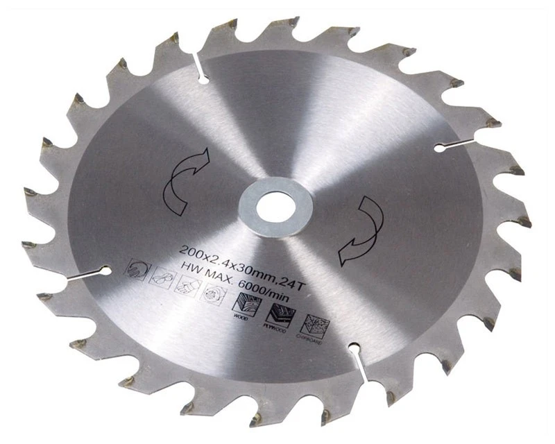 24-tands 200 mm klinge med Ø30 mm hul og indlægsskive til 16 mm hul. Klingen er med hårdmetal platter og kan bruges til afkorter, rundsav mm.