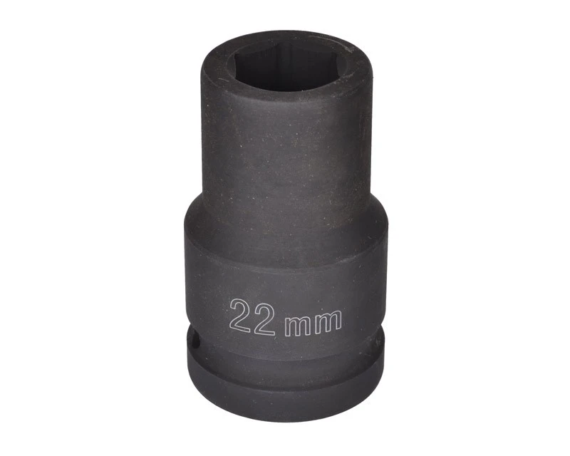 Kraftig støbt sekskantet 22 mm slagtop med 1″ firkantet opsætning. Kan kun bruges sammen med 1 tomme slagnøgle.