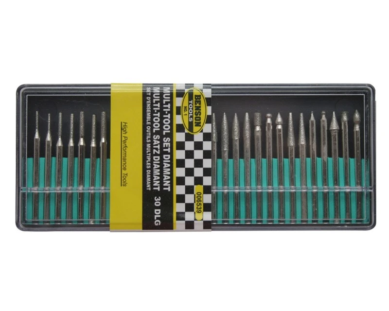 Alt hvad hjertet kan begære i diamantslibere i alle former. Brug fx til slibning eller gravering på glas. Indeholder 30 stk. som bliver leveret i hård metalæske.
