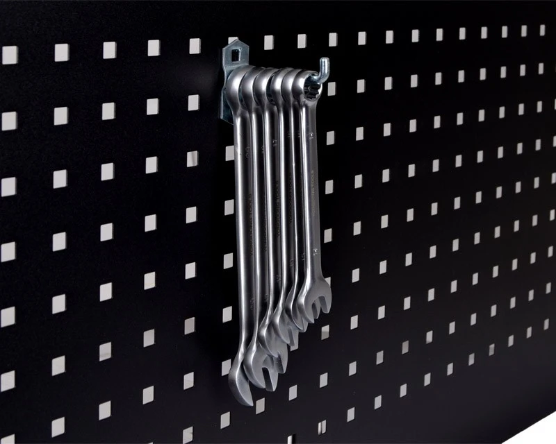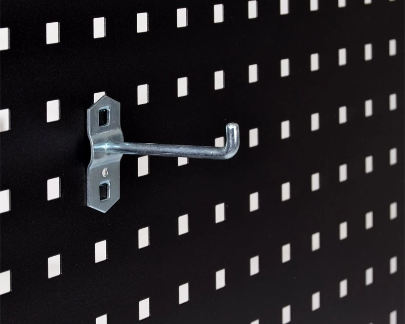 Pakke med 5 kroge med en længde på 75 mm til vores hulplade system med 10×10 mm huller. Krogene passer både på de blå og sorte plader (106×50 cm) og på værkstedsvogne nr. 8005574 + 8005577. Ud over denne type findes også længere og kortere kroge. Se herunder for udvalg.