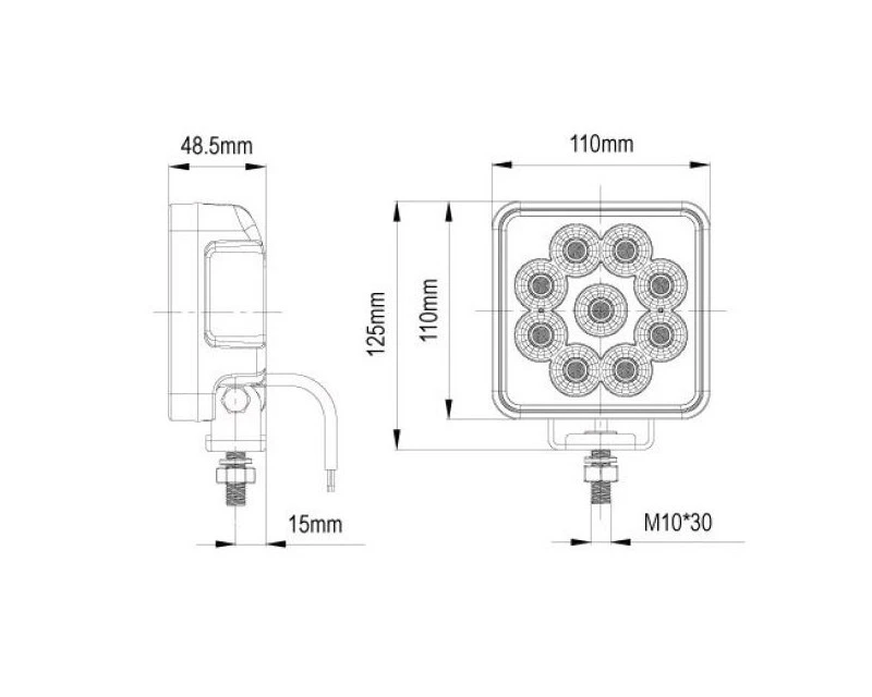 Meget kompakt LED Arbejdslampe med stor lysstyrke. Kan bruges til både 12 og 24 volt