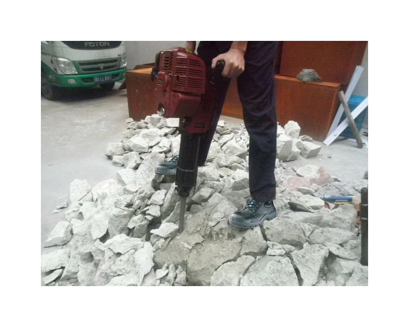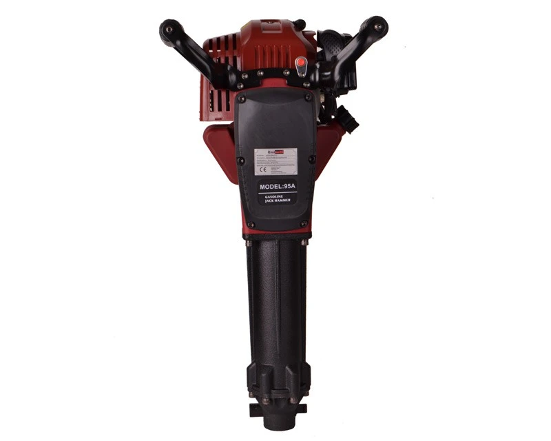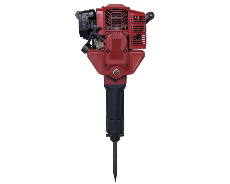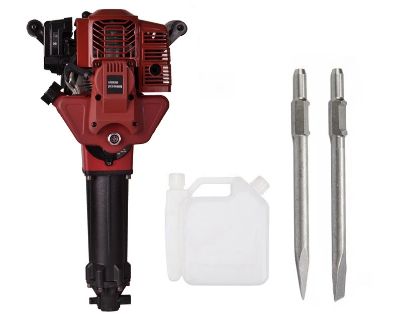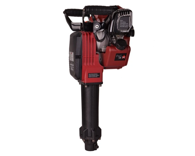 Benzindrevet nedbrydningshammer med variabel slagstyrke og 2 mejsler. En prisrigtig og meget let model med overraskende gode specifikationer. Se også ekstra mejsler til denne hammer herunder.