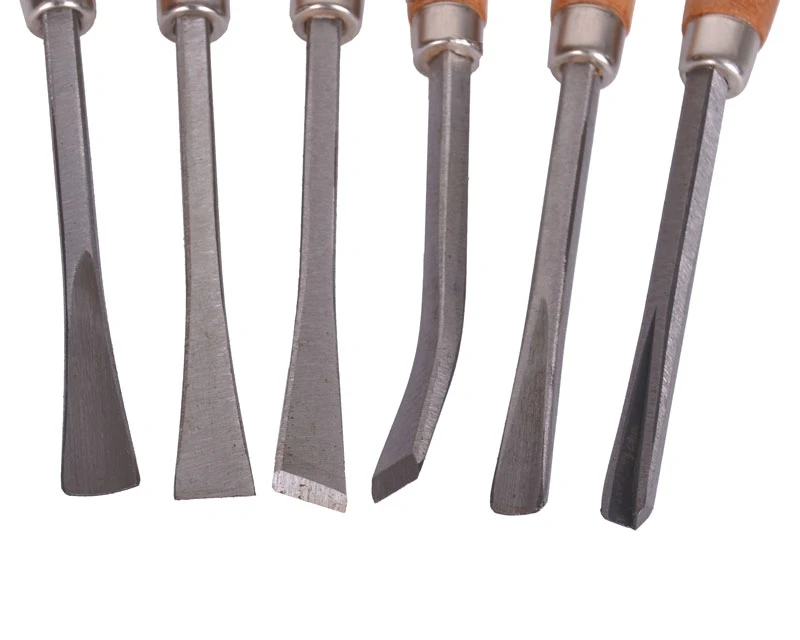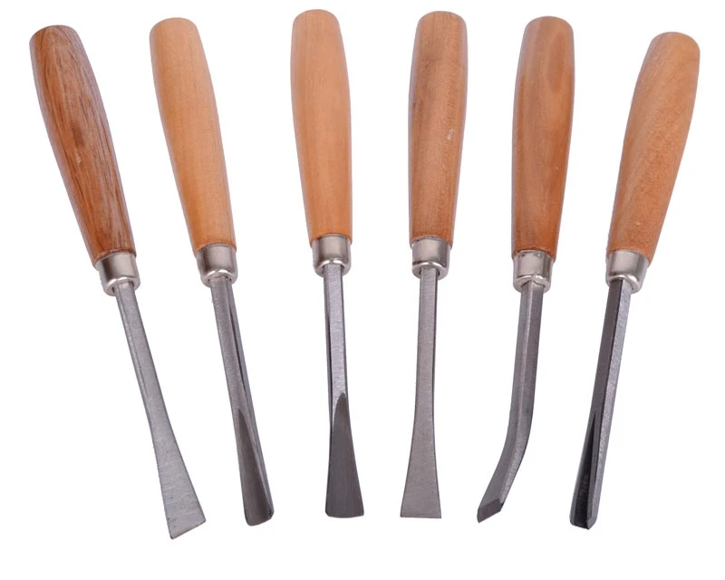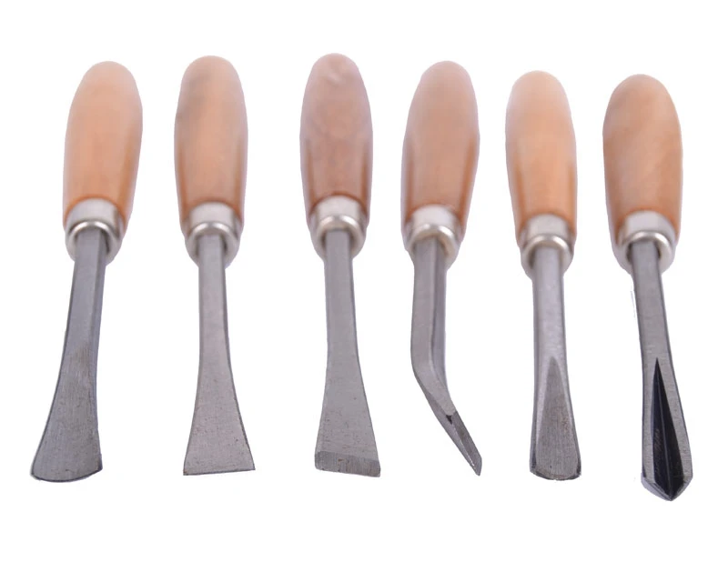 6 stk. billedskærerjern. 6 forskellige jern. Brug til det finere arbejde i træ og fx ved efterbehandling af drejede emner.