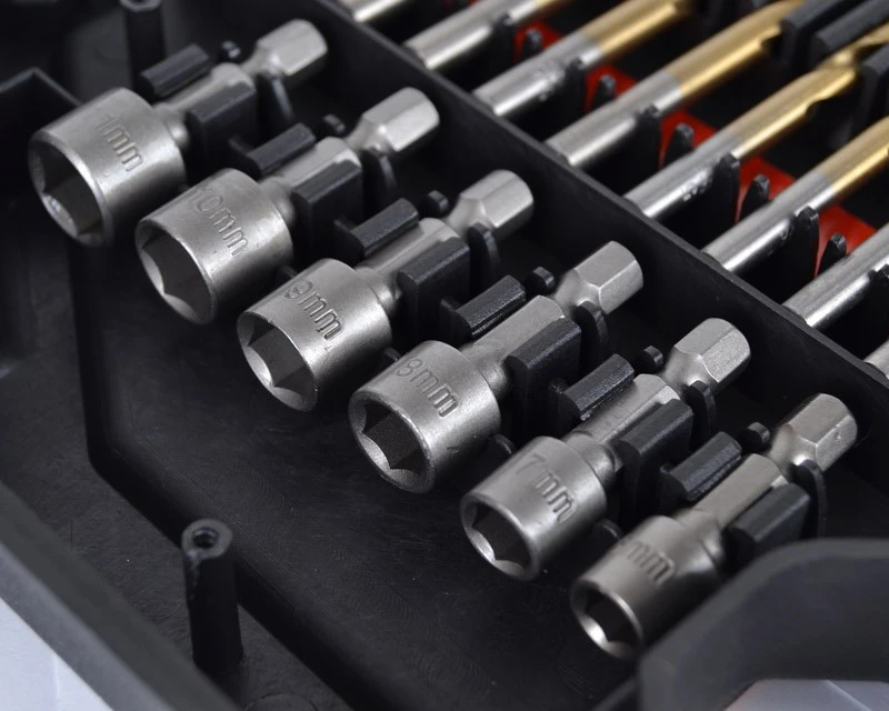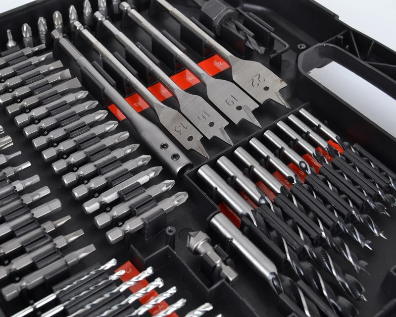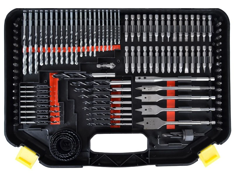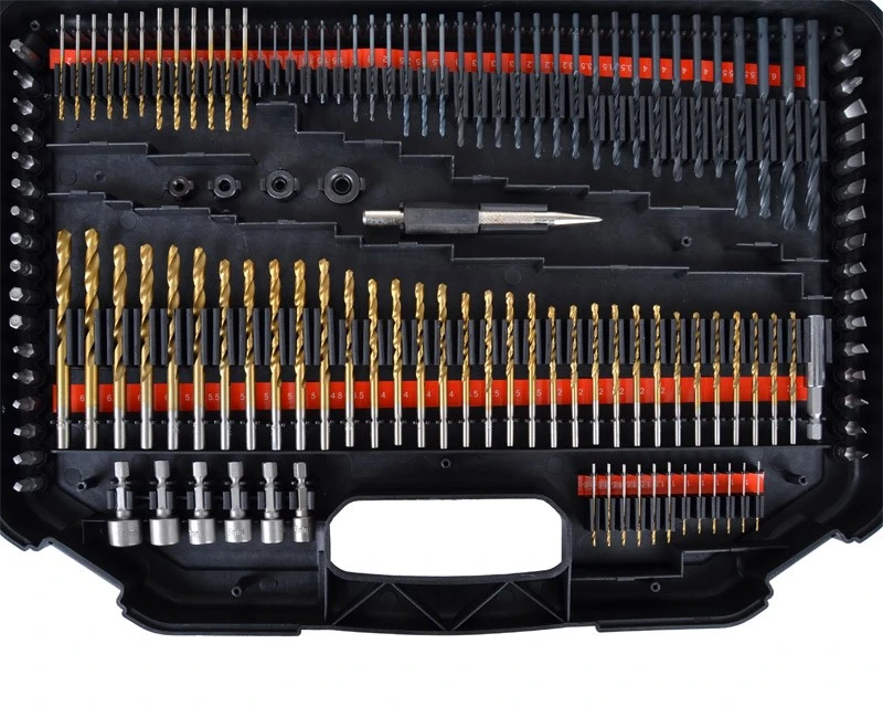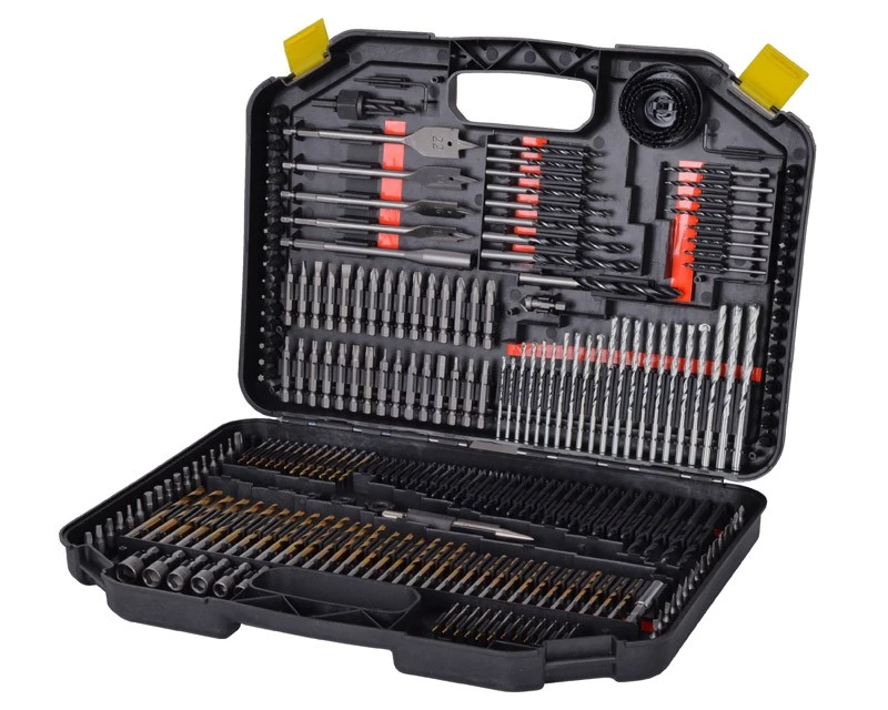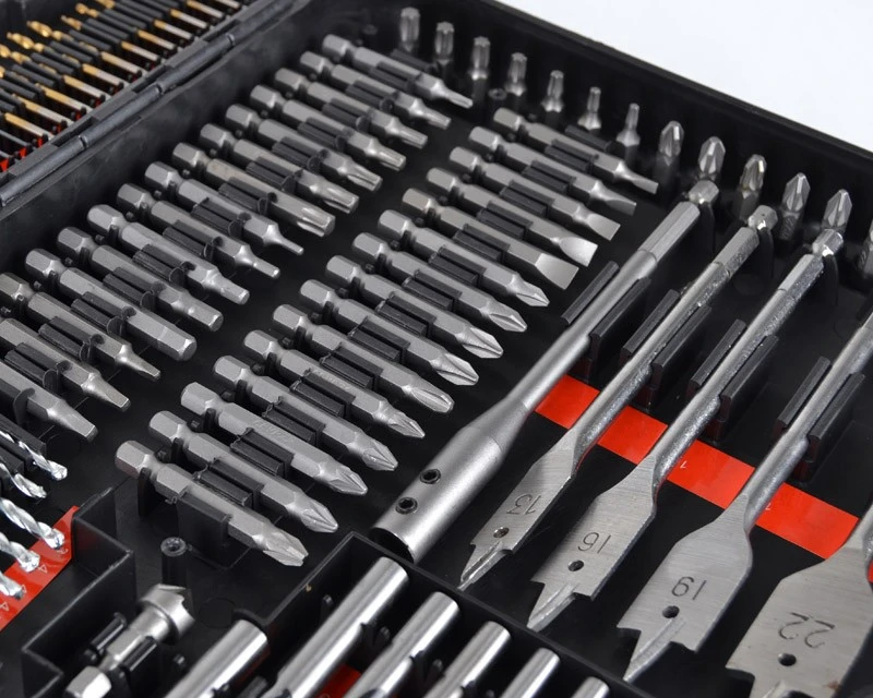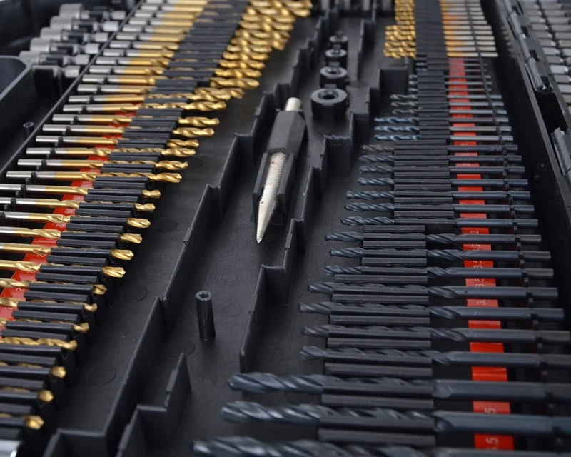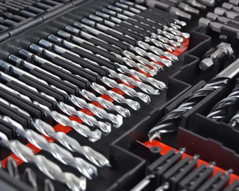 Det helt store sæt med alt i metalbor, træbor, murbor og bits. Sættet indeholder alle tænkelige former for bits, bor, forlængere og bitsholder. Bemærk at de mindre bor også kommer i specielle størrelser som 1½ mm – 2½ mm – 3,2 mm – 4,8 mm. Det er også nem at se størrelserne på borene, da der under disse er mærket tydeligt op. Se også de mange forskellige billeder af dette bor- og bitssæt.