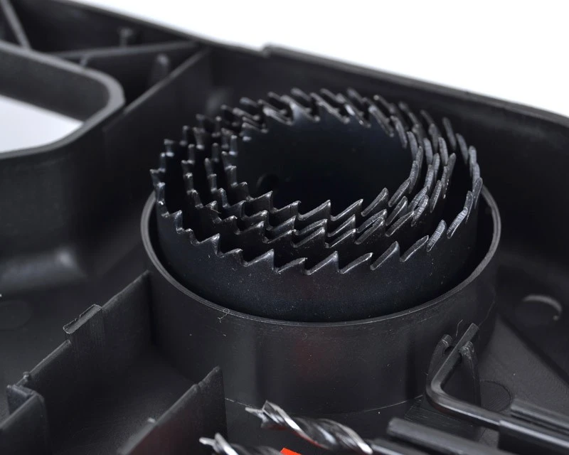 Hertil kommer 6 toppe, hulsave og forsænker.