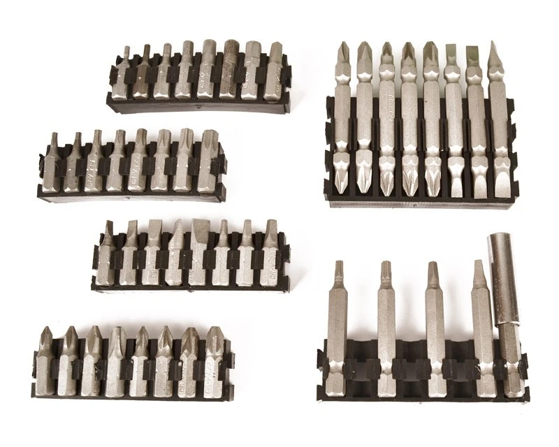 Sæt med 44 bits i forskellig længde og holder. Mange forskellige korte bits i både hex, torx, lige og krydskærv, samt de mere eksotiske firkantede udgaver.