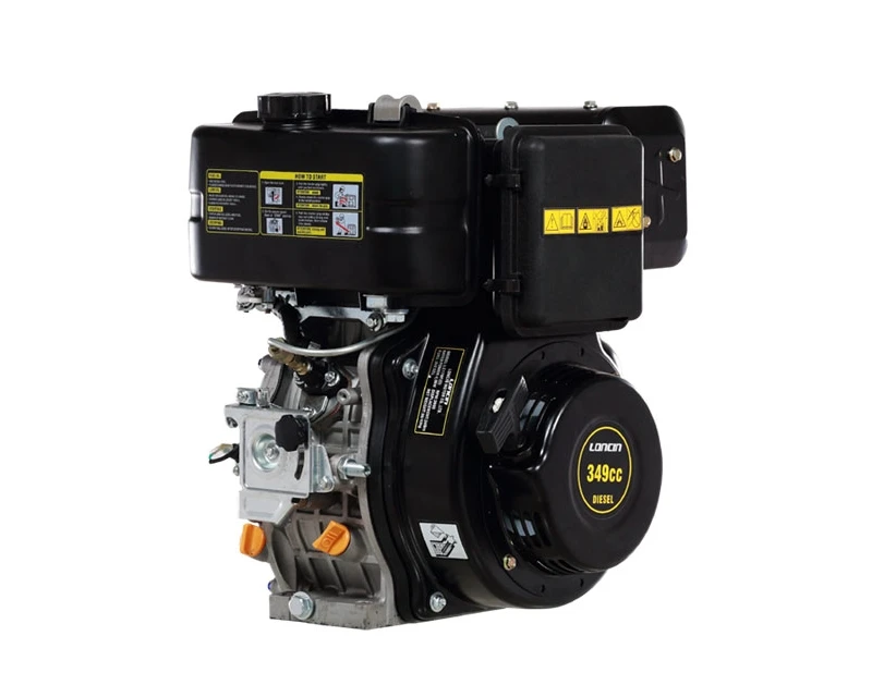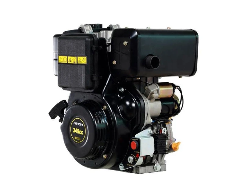 7 hk Loncin dieselmotor med elstart, direkte indsprøjtning og ekstra kraftig 60 watt (5 ah) ladespole. Med elektrisk magnet ventil for start /stop med nøgle.