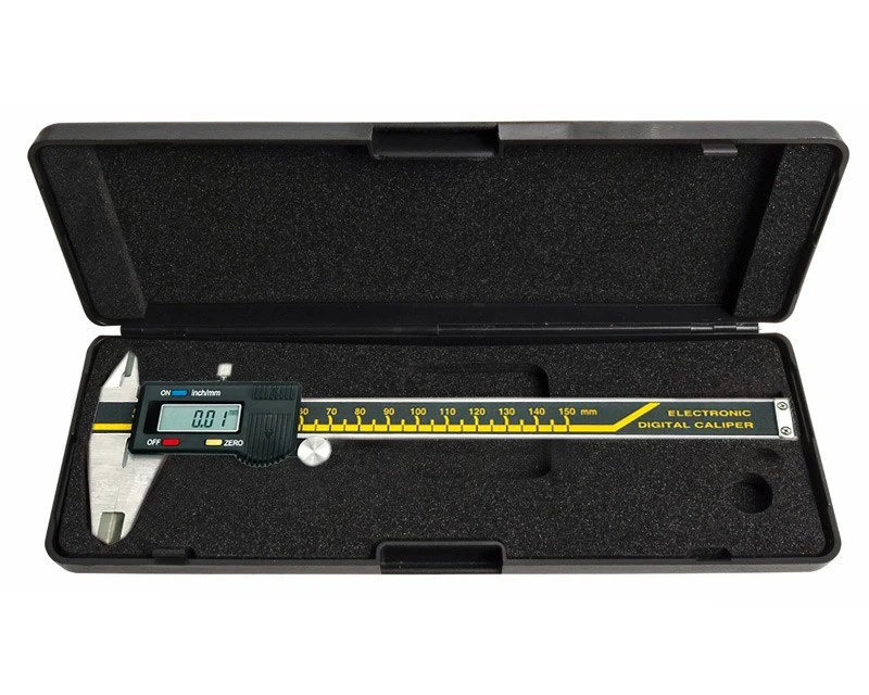 Digital skydelære med LCD display og høj nøjagtighed. Leveres i komplet pakke inklusiv batterier og den viste æske til opbevaring.
