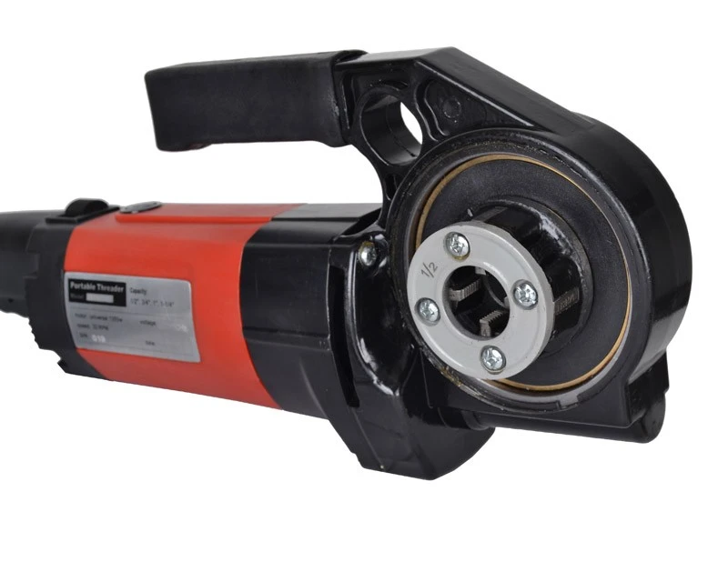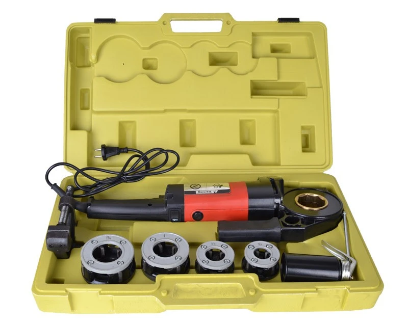 Motoren på denne elektriske gevindskærer har frem/bak funktion og kører med kun 32 omdrejninger pr. minut og er dermed velegnet til at skære gevind i almindelig jern og galvaniseret jern. Hele sættet leveres i en praktisk plastikkuffert med plads til alle dele.