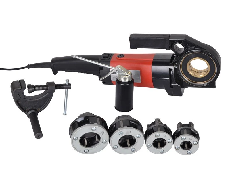 Elektrisk gevindskærersæt eller rørskærersæt med 4 forskellige skærehoveder i de mest almindelige størrelser. Udover den motoriserede skæremaskine indeholder dette sæt også en holder/rørtvinge i støbejern til montering og styring af rør under arbejdet. Denne rørtvinge skal altid anvendes og hjælper med at beskytte maskinen og sørger samtidig for at røret altid kører rigtigt i maskinen.