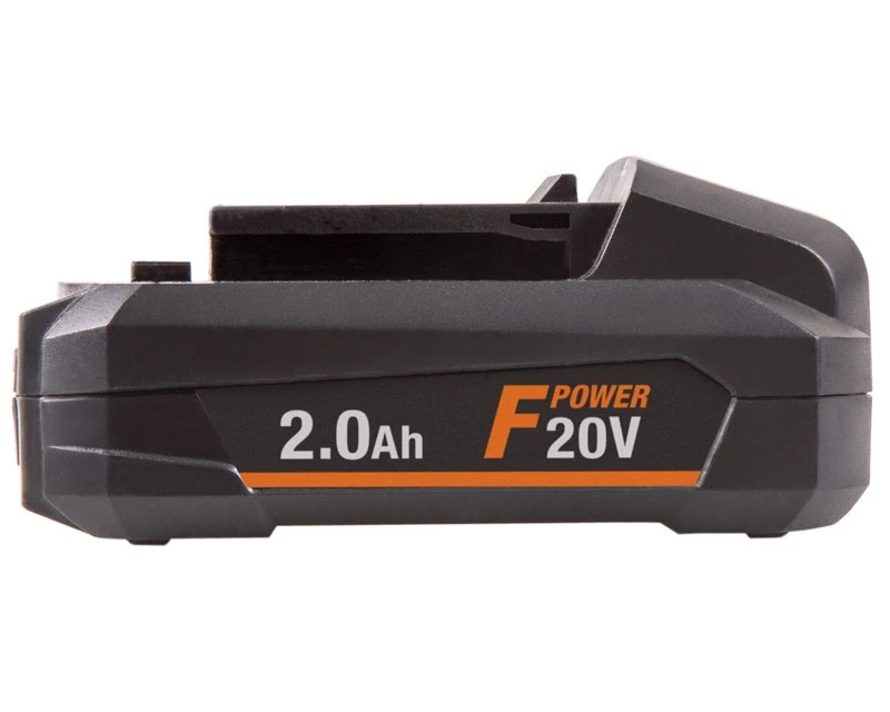 20 volt Lithium-Ion batteri til FERMs F-power serie bestående af 10 forskellige batteri værktøjer lanceret 2021. Begge batterier har indikator, som kan vise hvor meget strøm der er tilbage på batteriet.