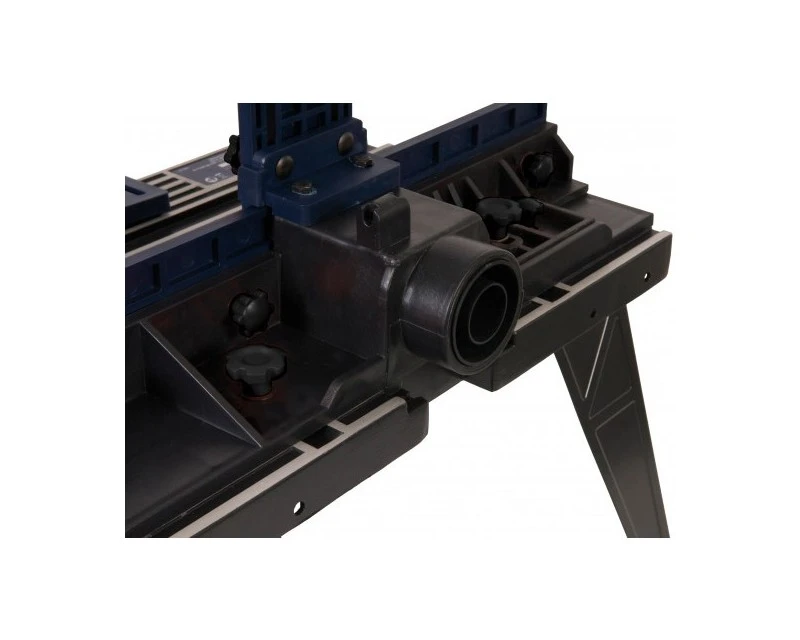 Man sætter blot overfræseren fast i bordet og får dermed en stationær fræser. Solid bordplade i jern, samt fødder af jern.