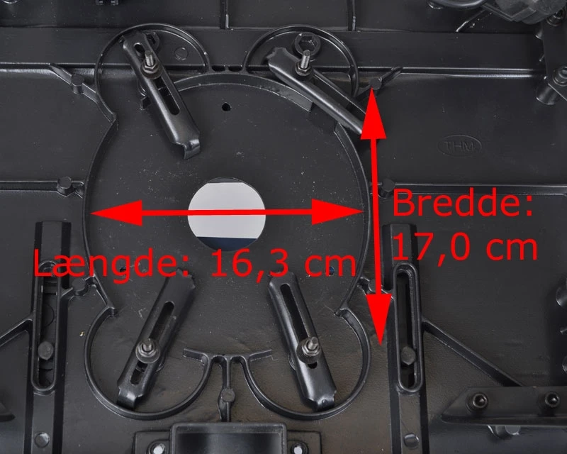 - Max diameter på sål/fod på fræser: 163×170 mm – se billede herover