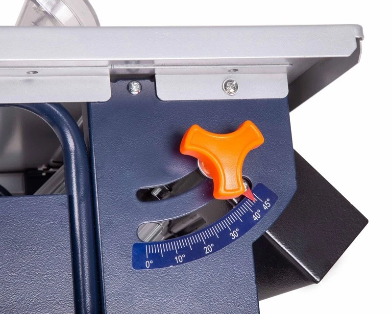 Transportabel bordrundsav fra FERM med 200 mm TCT klinge, parallelstyr og mulighed for smigskæring 0-45°. Herudover ekstra præcis vinkeljustering ved smigskæring.
