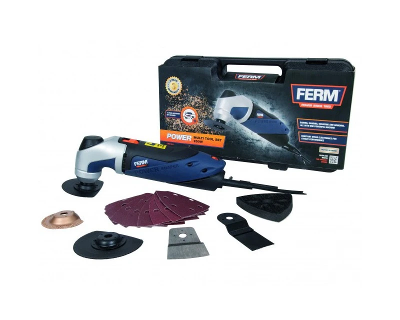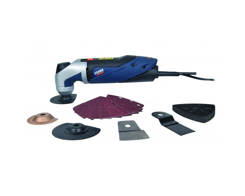 Fugeskærer fra FERM med variabel hastighed og masser af tilbehør herunder også segmenteret klinge til skæring i fliser. Brug denne maskine til vinkelret udskæring/savning og slibning af mindre overflader. Leveres i plastikkuffert med plads til maskine og tilbehør.