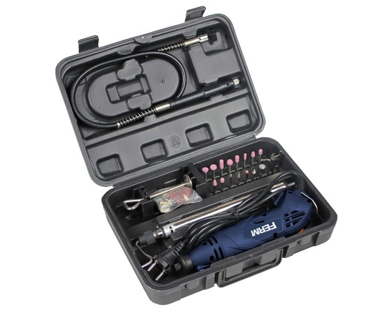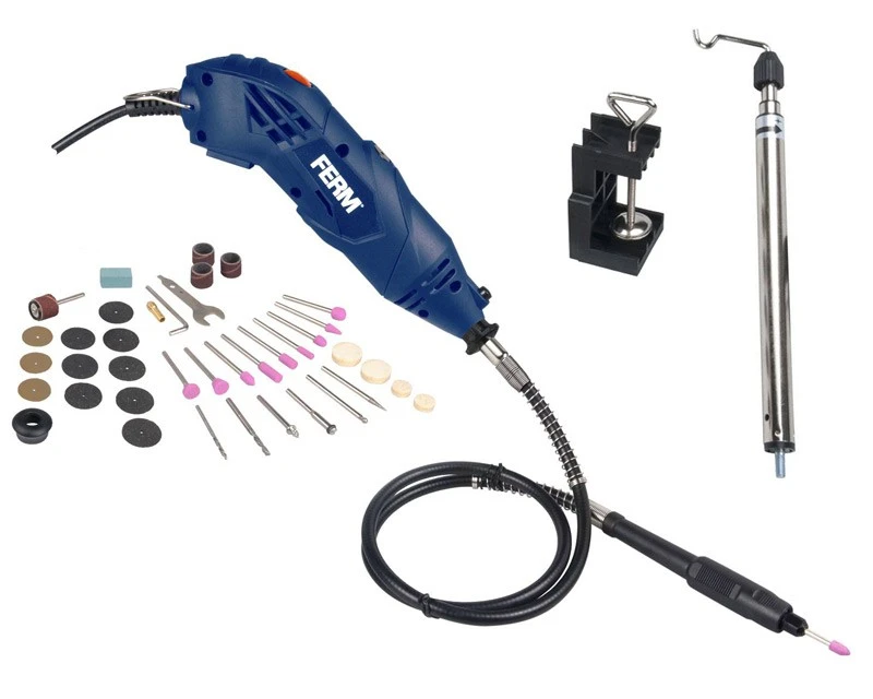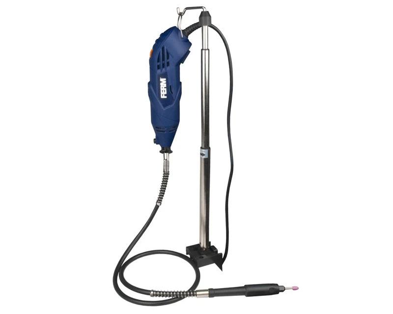 Effektiv minisliber fra FERM med flexibel slange, ophæng og holder til montering på bordplade. Ophænget kan justeres i højden og giver optimal frihed under brug og er samtidig kun lidt tykkere end en kuglepen at holde om. Brug denne maskine til slibning af mange forskellige materialer og til polering af små dele. Se også det store udvalg af inkluderet tilbehør og mulige tilkøb herunder.