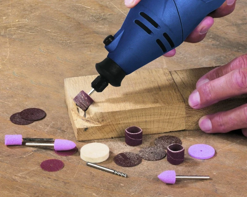 Til denne maskine tilkøbes ekstra tilbehør, herunder blandede sortimentkasser eller æsker med metalslibere eller diamantsliber. Se under produktet.