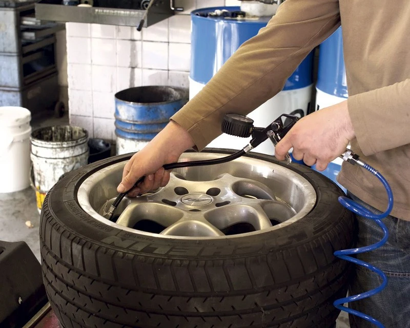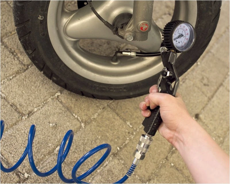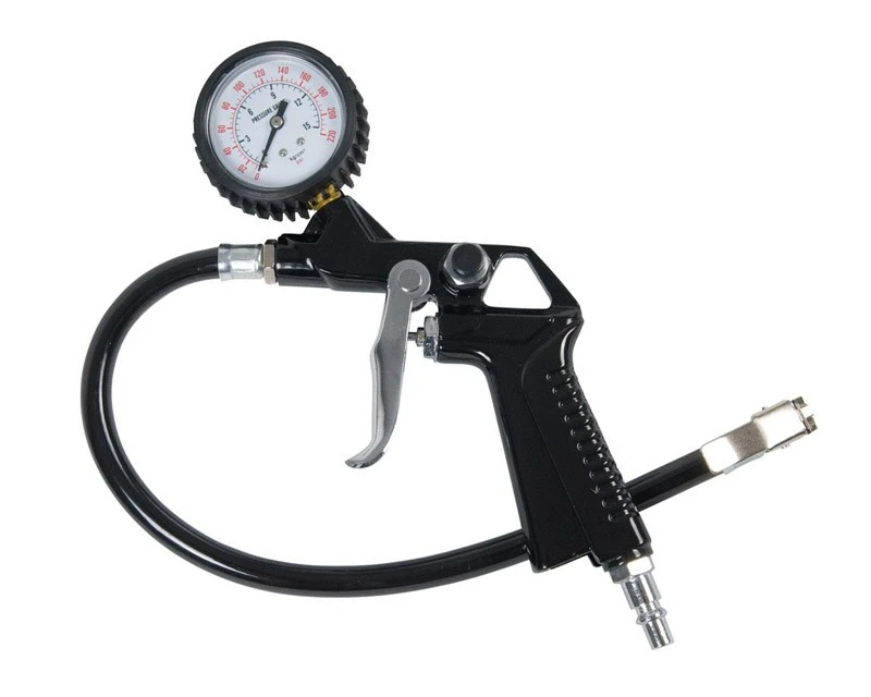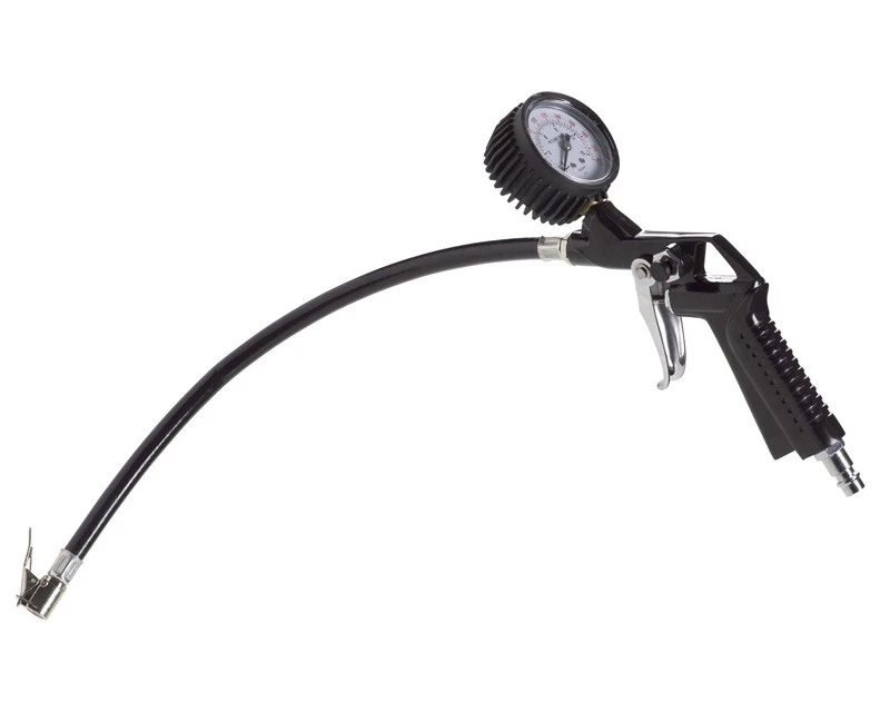 FERM kombineret trykluft pumpepistol og dæktryksmåler til cykler, knallerter mm. Leveres inkl. 2 forskellige nipler, så den kan bruges sammen stort set alle kompressorer.