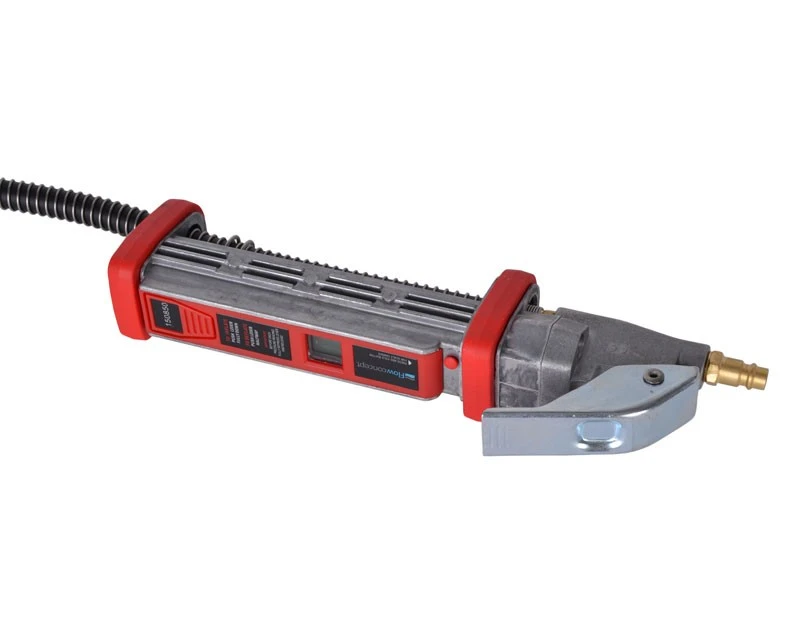 Pumpepistol digital i støbt aluminium fra Flowconcept. Med let aflæseligt display og stødabsorberende gummibelægning.