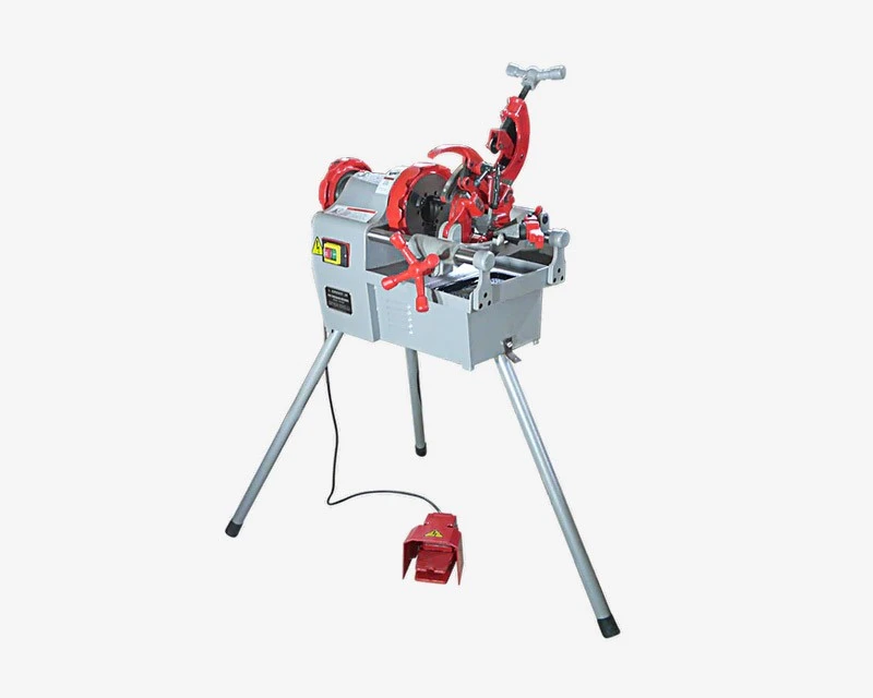 Professionel gevindskærermaskine med automatisk åbning af skærehovedet efter gevindskæring. Brug denne maskine til at skære gevind fra ½” – 2″ (15-50 mm) samt afkorte og afgrate rør. Bemærk også den kraftige motor på 750 watt og de aftagelige ben: Med 3 ben er det hurtigt at flytte gevindskæreren da den altid vil stå stabilt uden at vippe.