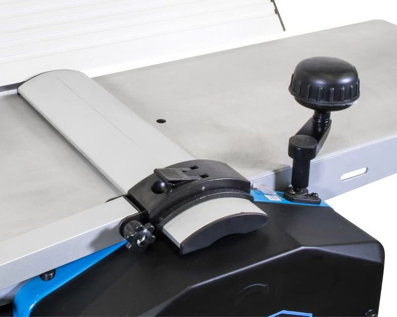Denne afretter leveres med aluminiumsbord og har parallelstyr, som kan justeres trinløst 0-45°. Mulighed for tilslutning af udsugning fx i form spånsuger. Inkl. sikkerhedsafskærmning, 2 stk. HSS klinger og naturligvis også overbelastningssikring.