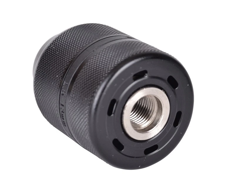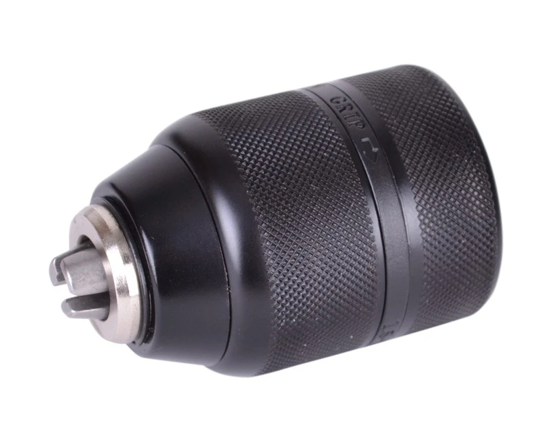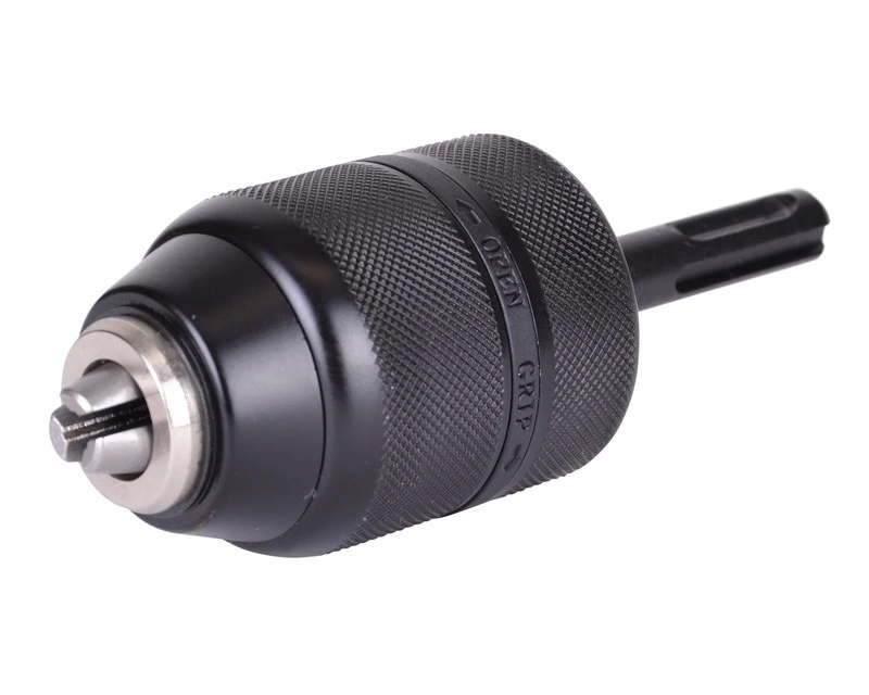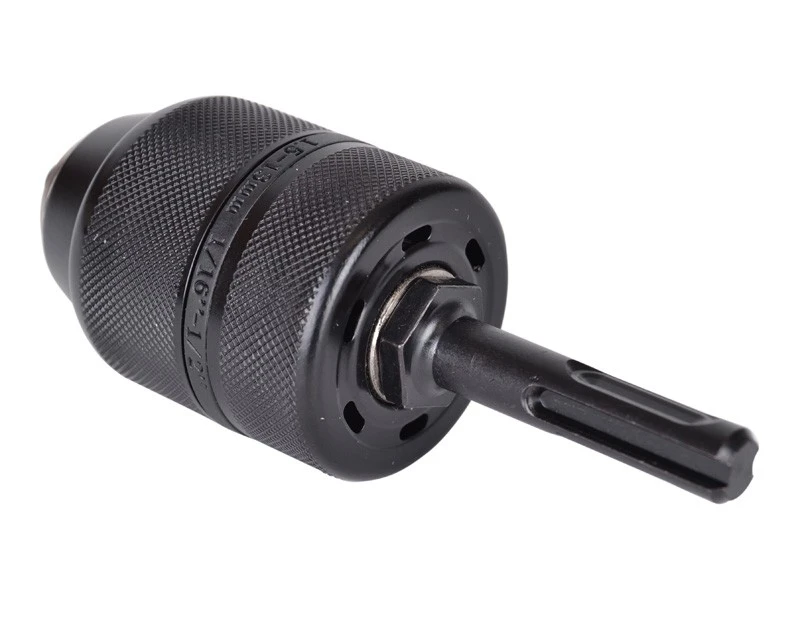 Kraftig selvspændende borepatron i metal med adapter, så man også kan bruge den i SDS+ boremaskiner.