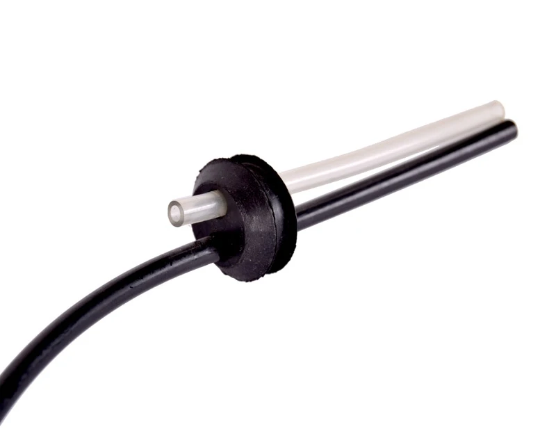 Gummi gennemføring med slanger og filter til tank på græstrimmer, hækkeklipper, pælebor mm.
