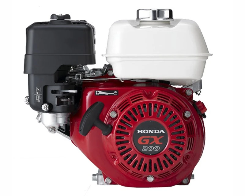 4-takts 1-cylinderet OHV benzinmotor fra Honda. En klassisker med lavt benzinforbrug og vandret aksel (Ø20 mm). Med rekylstart, tørluftfilter, standard lydpotte og ikke mindstoliealarm.