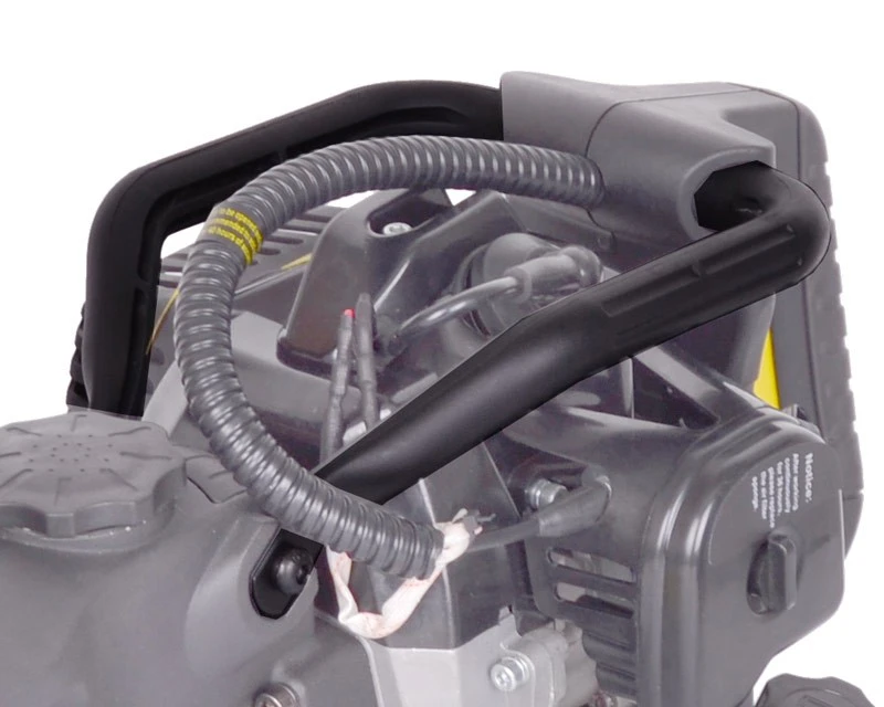 2-delt håndtag som sidder øverst på benzindrevet borehammer.