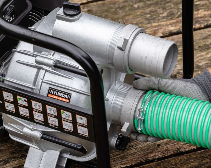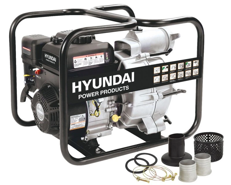 Stor Hyundai 3 tommer vandpumpe med ekstra kraftigt pumpehus, som kan klare partikler op til 22 mm, og dermed er det optimale valg til fx byggeri og spildevand. Vandpumpen flytter op til 45 m³ vand i timen. Leveres med viste studser, plastik sugesi og spændebånd. Husk at tilkøbe 0,6 liter olie til motoren.