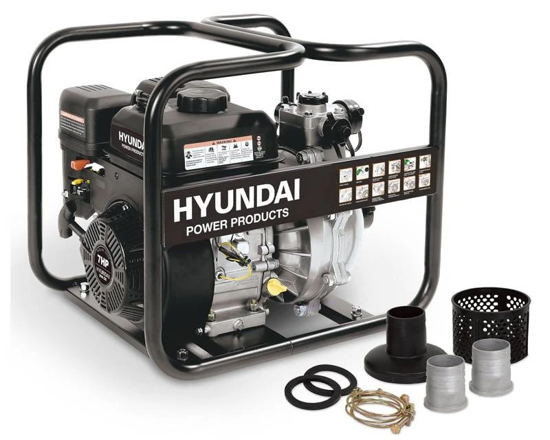 Benzindrevet vandpumpe fra Hyundai med stor ydeevne og 3″ afgang/indgang. Pumpen kan flytte op til 60 m³ vand pr. time (1.000 liter pr. minut!) og har desuden en god løftehøjde på op til 28 meter. Leveres med de viste studser, sugesi og spændebånd.
