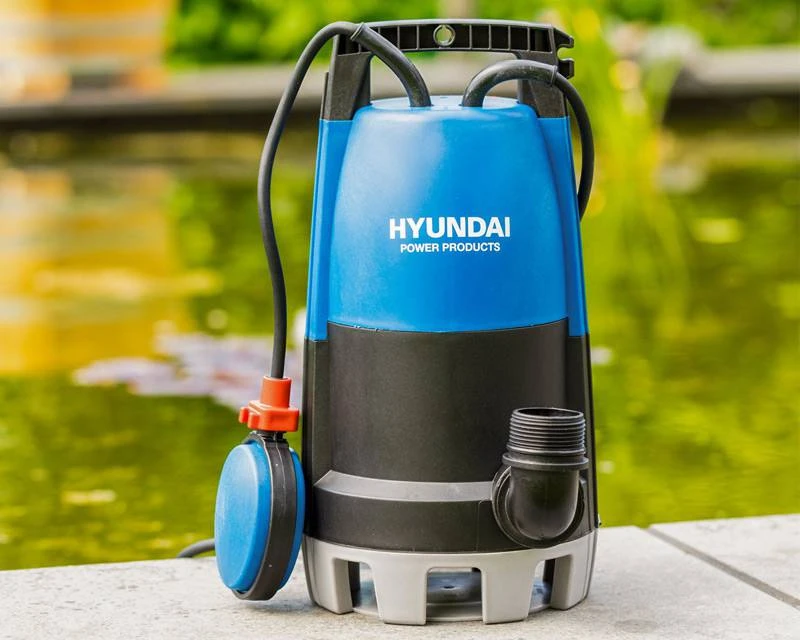 Vedligeholdelsesfri dykpumpe fra Hyundai til beskidt vand med partikler op til 30 mm. Med en løftehøjde på 8,5 meter og en kapacitet op til 17.500 liter pr. time er denne pumpe anvendelig i mange situationer.