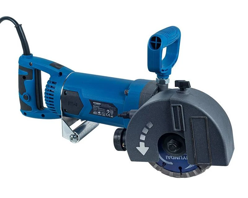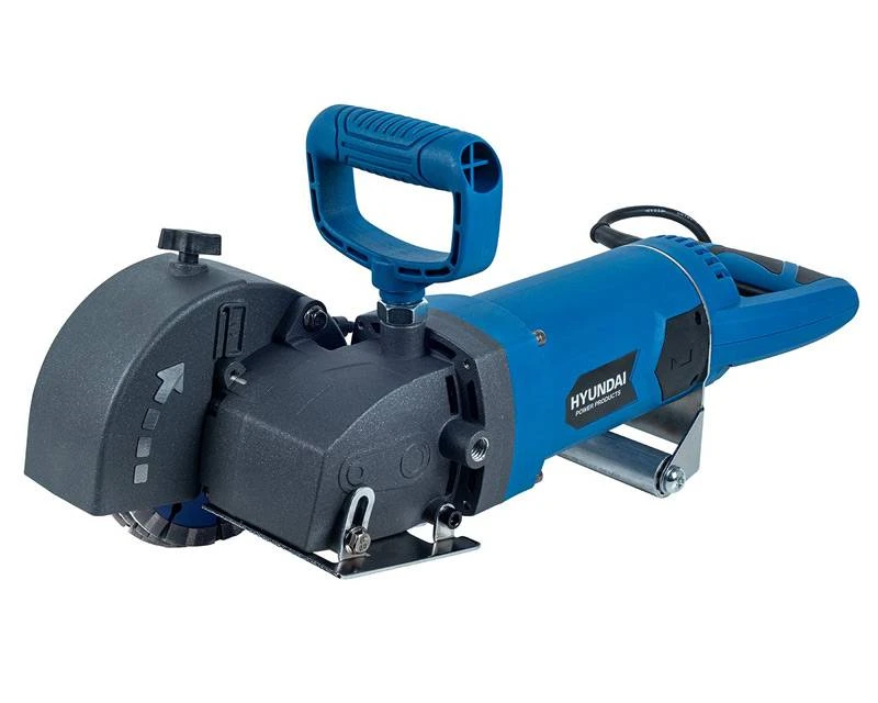 Professionel murrillefræser fra Hyundai. Er udstyret med 5 separate diamantklinger i 3 forskellige størrelser og fræser et spor, som man med det samme kan lægge ledninger/rør i. Maskinen har desuden rulle og glidesål, som kan justeres alt efter den ønskede fræsedybde 8-42 mm.