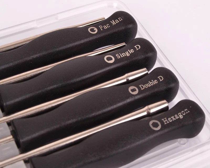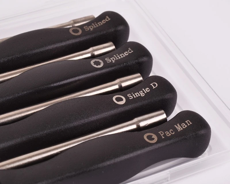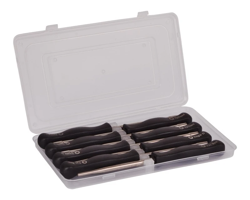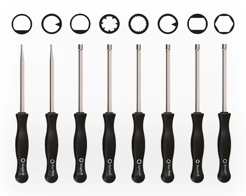 Sæt med 8 forskellige skruetrækkere til justering af karburatorer. Leveres som vist i praktisk plastikæske. De fleste modeller har et indvendigt mål på 5 mm – bortset fra de nævnte herunder.