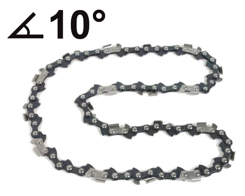 Kløvekæde til savning af planker mm. Disse kæder er alle slebet i en vinkel på 10° og giver et bedre snit på langs af træet og desuden mindre slid på saven. Oplagt til brug sammen med vores mini savværk.