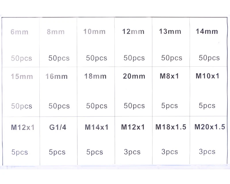 Bundpropper: M8x1, M10x1, M12x1, G1/4, M14x1, m12x1, M18x1.5, M20x1.5 (3-5 stk. af hver størrelse)