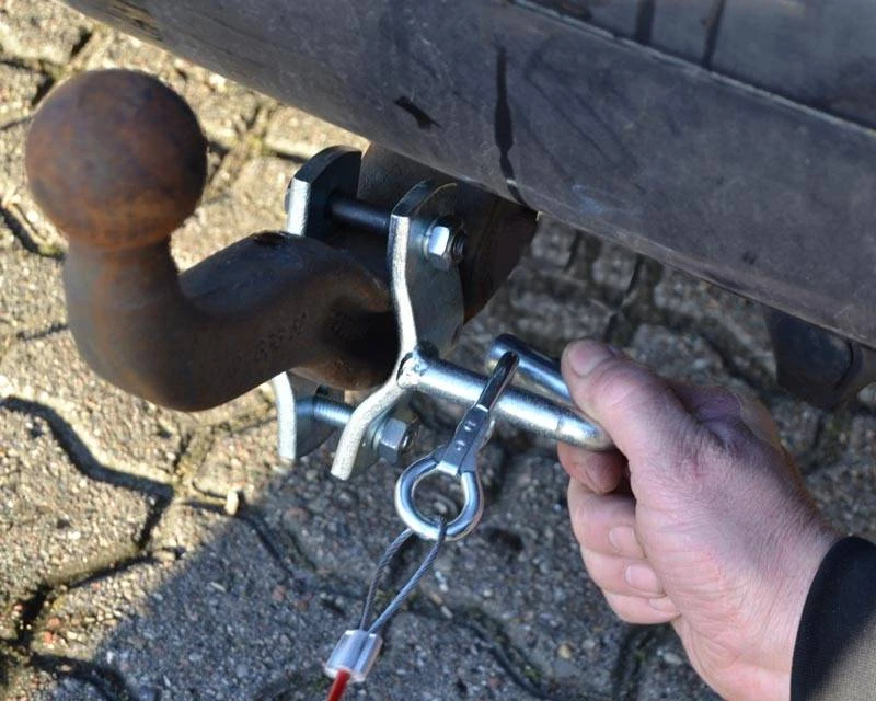 Husk også at det ikke er lovligt at montere sikkerhedswiren direkte på trækkrogen – mens denne krog/beslag gerne må monteres på trækket – også de aftagelige.