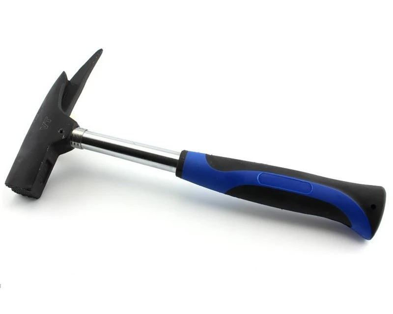 Læftehammer/kløfthammer med metalskaft og gummihåndtag.
