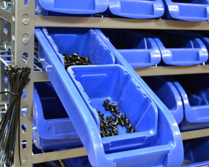 Høj lagerreol med 36 skuffer: 15 små, 12 medium, 9 store