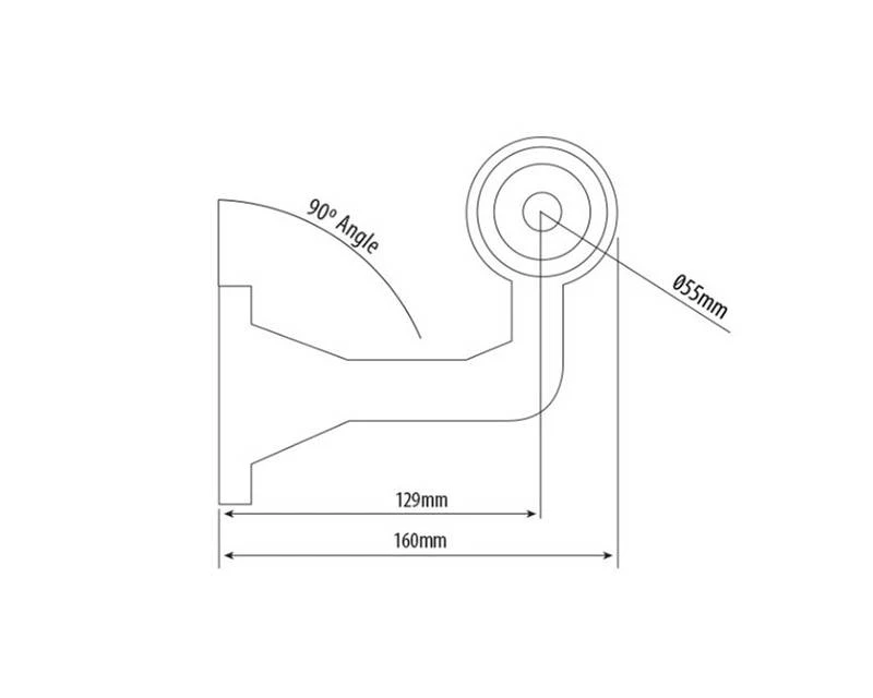 LED slingrelampe med 90 grader bøjning til montering på lodrette flader. Denne lampe kan bruges til både 12 og 24 volt.