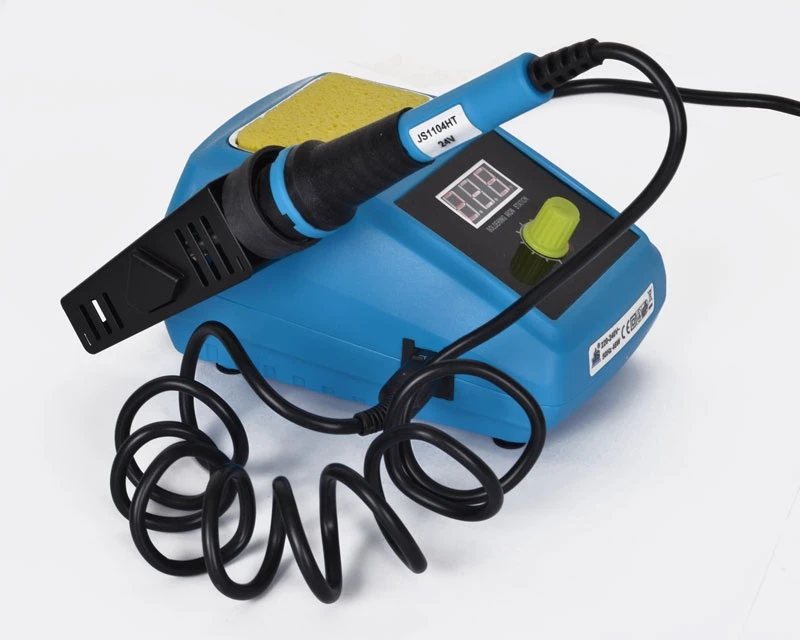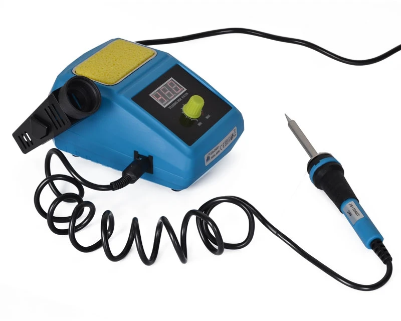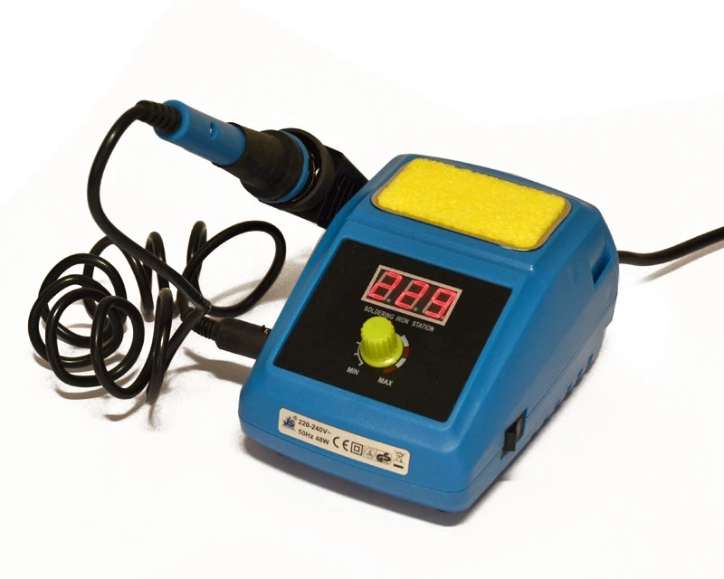 Loddestation med variabel temperaturindstilling fra 100-450 °C, digital display og indbygget holder til selve loddekolben.
