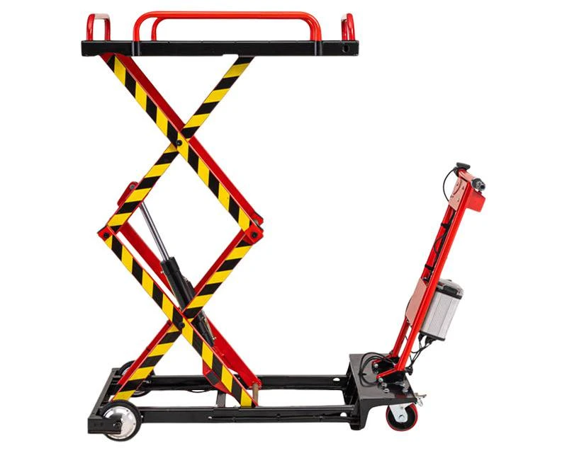 Motoriseret løftebord som er helt fri for kabler og i stedet får strøm fra et kraftigt 40 volt batteri. Med både løftefunktion og fremdrift på hjul, så man slipper for at trække bordet rundt. Hydraulisk stempel, som kan løfte op til 300 kg i en højde op til 150 cm – og som holder samme position, selv bordet løber tør for strøm.