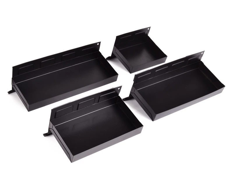 Sæt med 4 magnetiske skuffer til montering på fx værkstedsvogn. På bagsiden af skufferne sidder 2, 3 eller 4 kraftige magneter, som holder skuffen fast på overflader af jern.