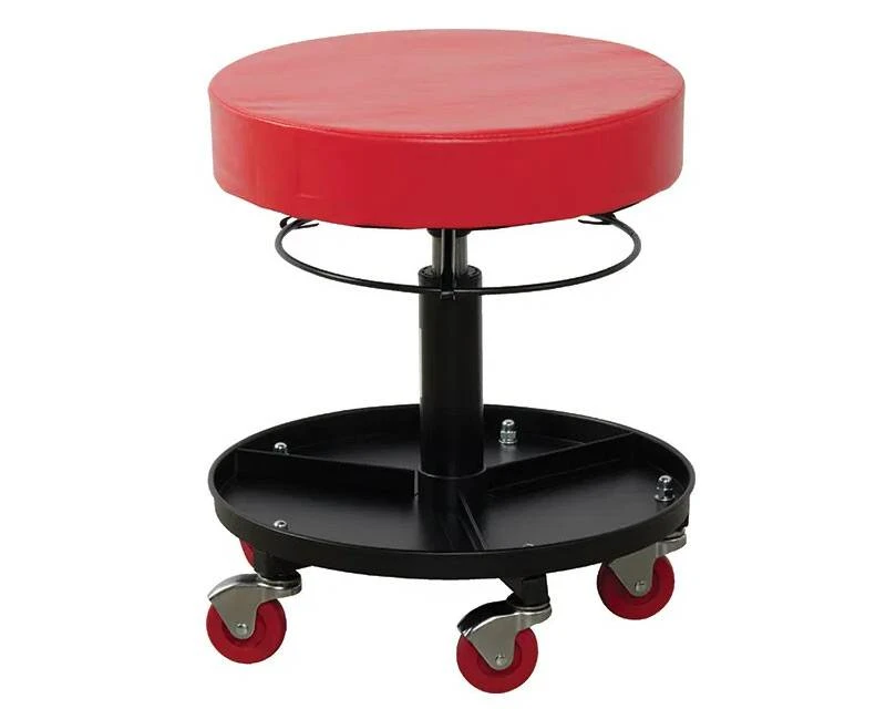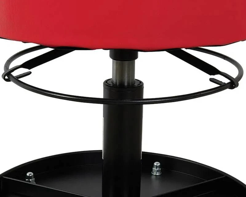 Smart værkstedsstol / montørstol / mobil taburet med bakke i bunden til skruer, dimser og værktøj. Stolen har 5 hjul for god balance og gaspatron, så man nemt kan justere højden.
