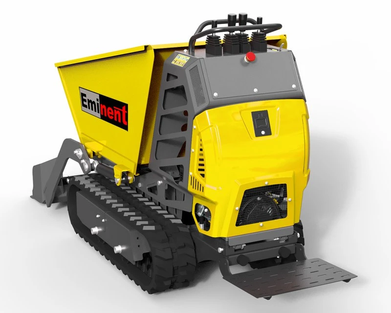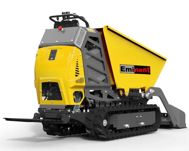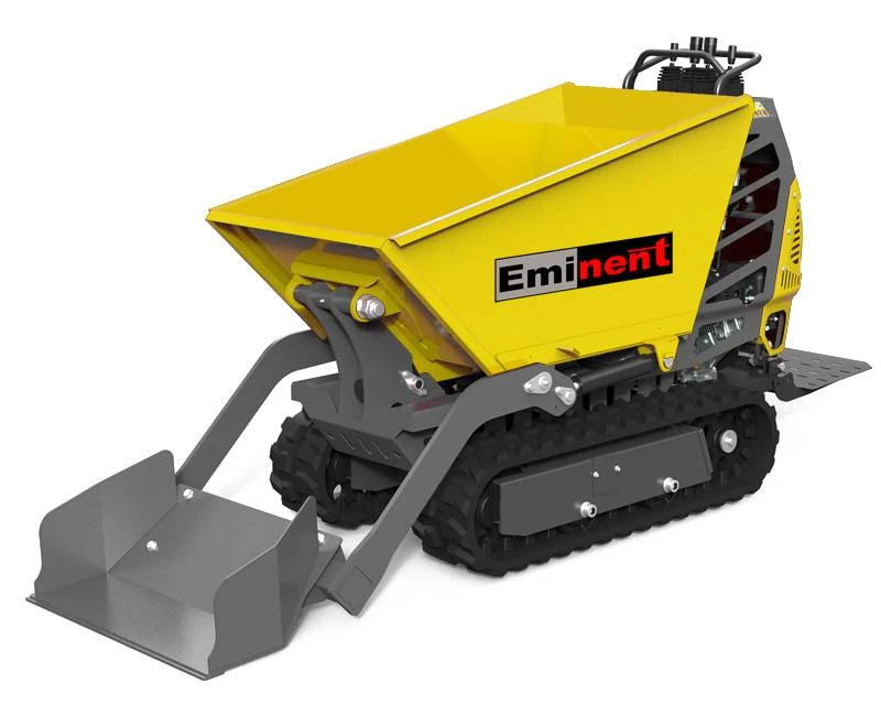 Eminent Motorbør med hydraulisk transmission, læsseskovl, trinbræt og 8,5 hk benzinmotor. Nem betjening: særskilt greb til højre/venstre bånd, lad og skovl.