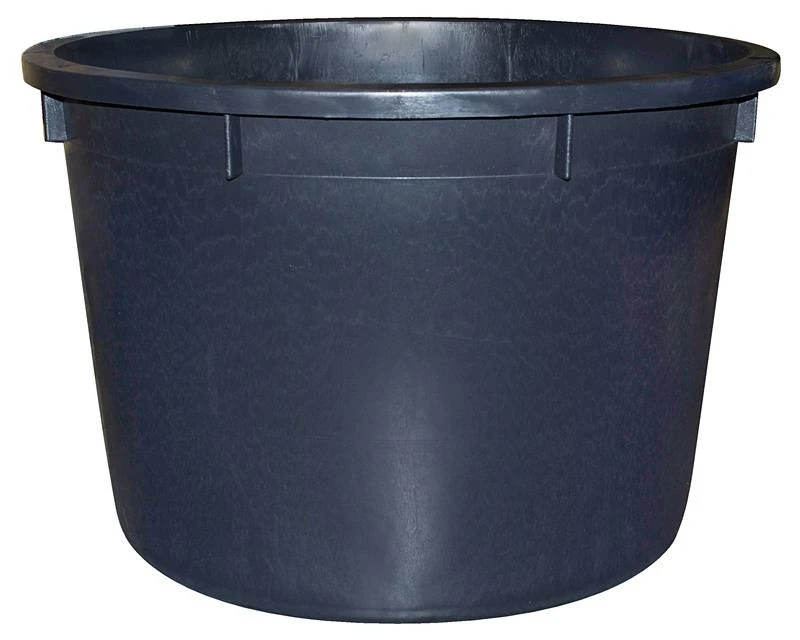 Ekstra stor rund murerbalje på 220 liter. I kraftig sort plastik som kan bruges som både vandkar som buffer under terrasserensning.