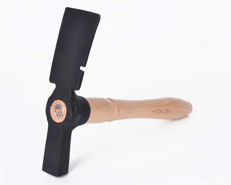 Murerhammer i høj kvalitet. Med skaft i hickory og hoved i støbejern. Desuden sømudtrækker og skrap bagkant.