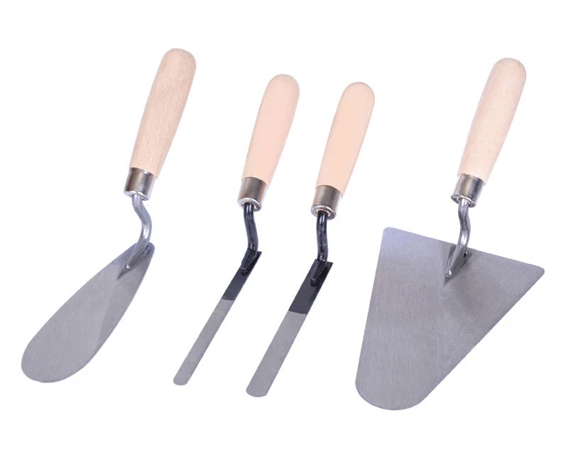 Sæt med 4 forskellige murerskeer. Alle værktøjer er udstyret med træhåndtag, som ligger godt i hånden.