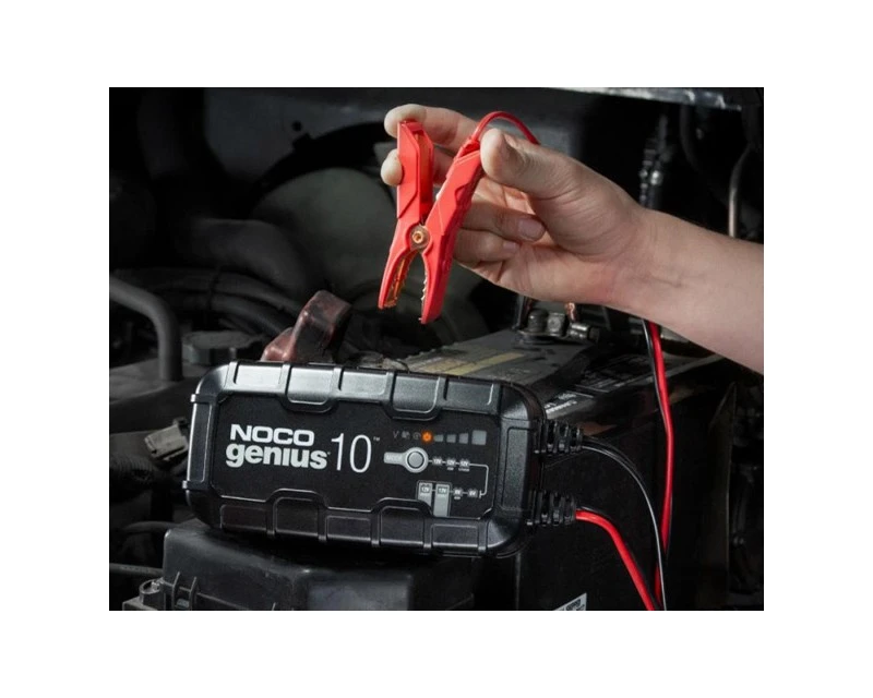 Effektiv og højtydende batterilader fra Noco Genius til både 6 og 12 volts blybatterier og lithium batterier. Meget at bruge med automatik og mulighed for at slå liv i selv døde batteri – kan oplade batterier med spænding på kun 1 volt !