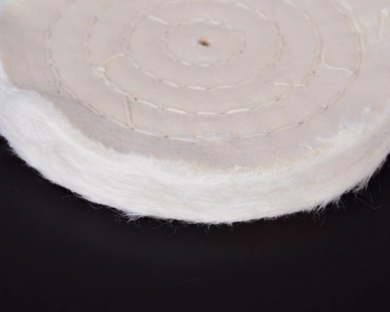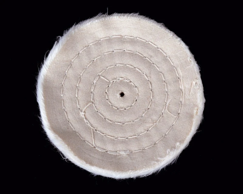 Polerskive til mini polermaskine nr. 8006349. Semihård skive bestående af mange stykker sammensyet stof. Kan også bruges til andre maskiner, der bruger konisk spindel.